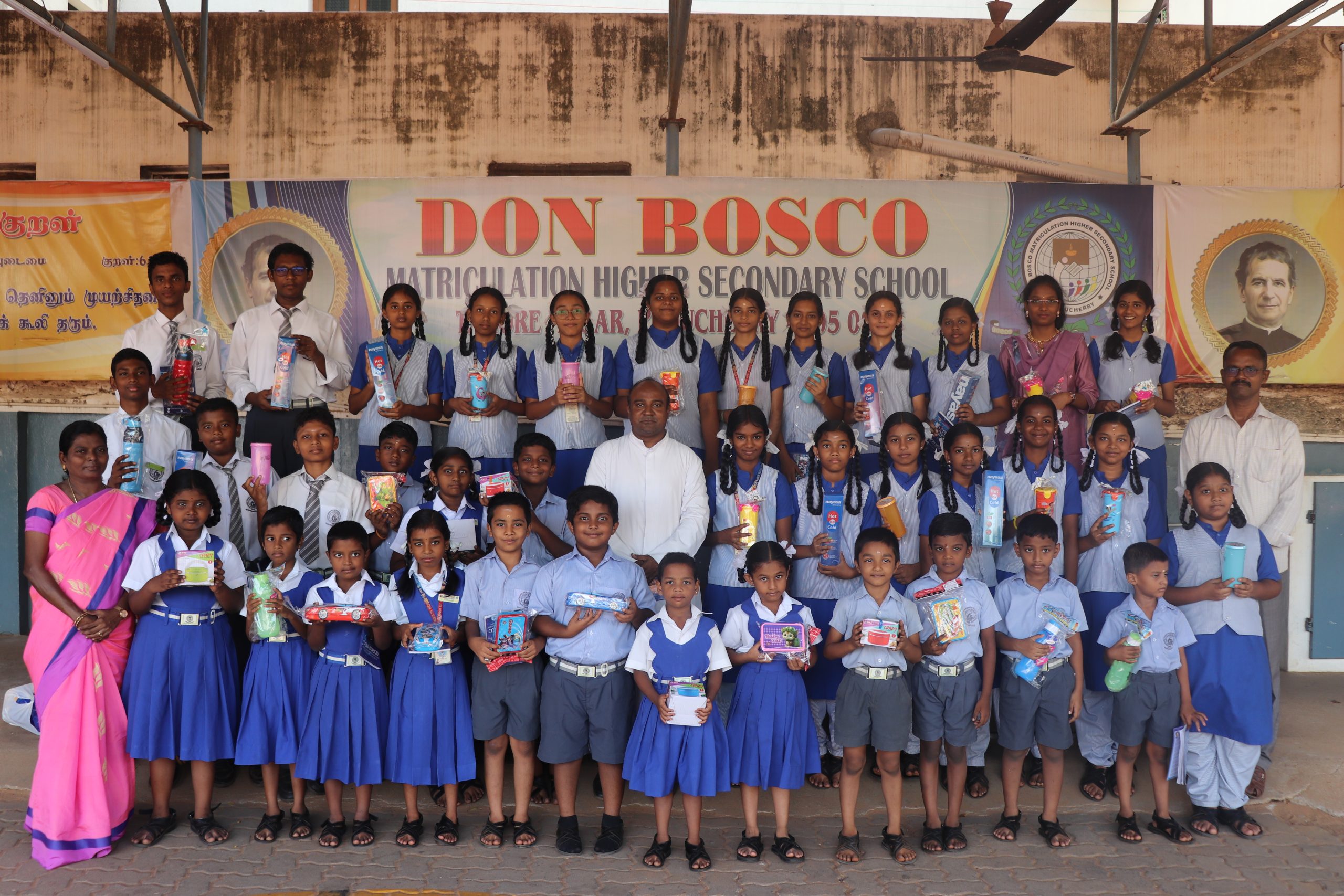 Don Bosco Matriculation Higher Secondary School, Puducherry founded in 1984 and recognized under the code of regulations for Matriculation Schools, Tamil Nadu vide Chennai 600 006, is a Catholic Institution. It is conducted by the Salesians of Don Bosco. It is a minority school. It was started with nursery and first standard in 1984. It was upgraded as middle school in 1989. In 1992, the recognition for starting high school was obtained from the Education Department. The School was upgraded to Higher Secondary in 1997 and made Co - Education in 2005. Don Bosco, Pondicherry is one of the numerous Don Bosco Schools spread out throughout the world. In Don Bosco schools the center of attention is the student,